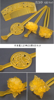 【コンビニ受取対応商品】【楽天BOX受取対象商品】 イベント&特集花魁簪 かんざし 4点セット 卵甲 牡丹 商品説明 丁寧に彫られた牡丹の絵柄は上品で高級感があり、簪にも立体的な牡丹があしらわれ卵甲色で華やかさもあります。