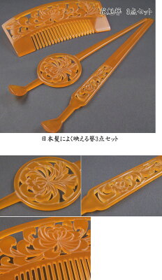 【コンビニ受取対応商品】【楽天BOX受取対象商品】 イベント&特集花魁簪 かんざし 3点セット べっ甲色 菊 商品説明 丁寧に彫られた菊の絵柄は上品で高級感があり、べっ甲色で華やかさもあります。