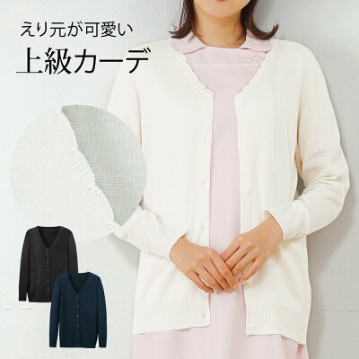 洗えるコットンライク スカラネックカーディガン【レディース 秋冬 ナース 白衣 医療 看護師 介護 事務 抗ピル 毛玉になりにくい 洗える スクール 制服 オフィス ユニフォーム ナースリー】7069