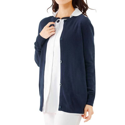 カシミヤタッチカーディガン(クルーネック)【レディース 秋冬 ナース 白衣 医療 看護師 介護 事務 洗える スクール 制服 オフィス ユニフォーム ナースリー】7057