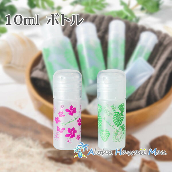 旅行時にも荷物にならない便利なポーチサイズのワンタッチ式ソフトボトル10ml! 360度ハワイアンデザインで、いつでもどこでもハワイアン気分を満喫しちゃいましょう! 片手でキャップを開けれるワンタッチ式! ポリエチレン素材の柔らかボトルなので化粧水・乳液やリンス、マスカラを使っている方には少量だけど使いたいアイリムーバー、ハンドジェルなどに使える小ぶりの詰め替え容器です。