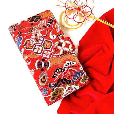 [ 上品 華やか 豪華 高級 大人 大人かわいい きれい おしゃれ お洒落 着物 和柄 和 織物 源氏絵巻 源氏物語 鳳凰 菊 牡丹 椿 流水 日本 赤 金 黒 花 女性 レディース 贈り物 プレゼント ハンドあり ベルト 手帳型ケース 手帳ケース 手帳型カバー 手帳カバー ]