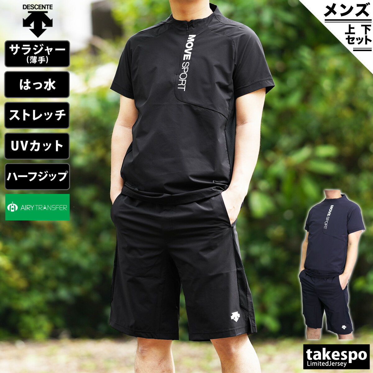 送料無料 新作 デサント クロス薄手 ジャージ 上下 メンズ DESCENTE エアリートランスファー 軽量 ストレッチ UVカット 半袖 ハーフ Move Sportムーブスポーツ DMMTJA56