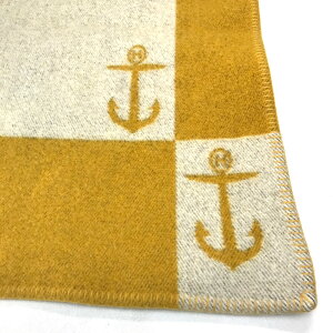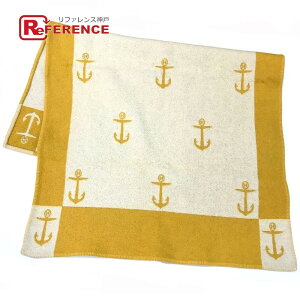 HERMES エルメス ツートン 長方形 マリン イカリモチーフ ラグ カーペット ウール ユニセックス マスタードイエロー系×アイボリー系 【中古】