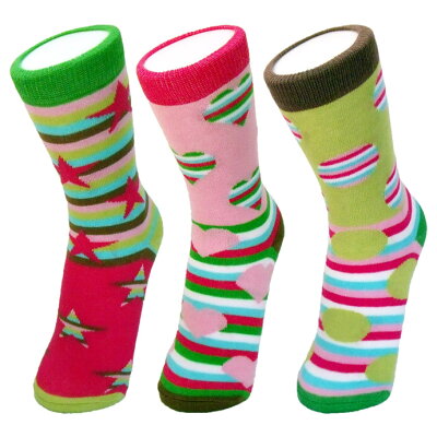 左右 柄 色違い オッドソックス 3本1セット フィエスタ 20.0〜24.0cm 靴下 レディース おしゃれ かわいい カラフル おもしろ コットン しましま ボーダー 水玉 ハート 星 クリスマス 2セットまでメール便OK